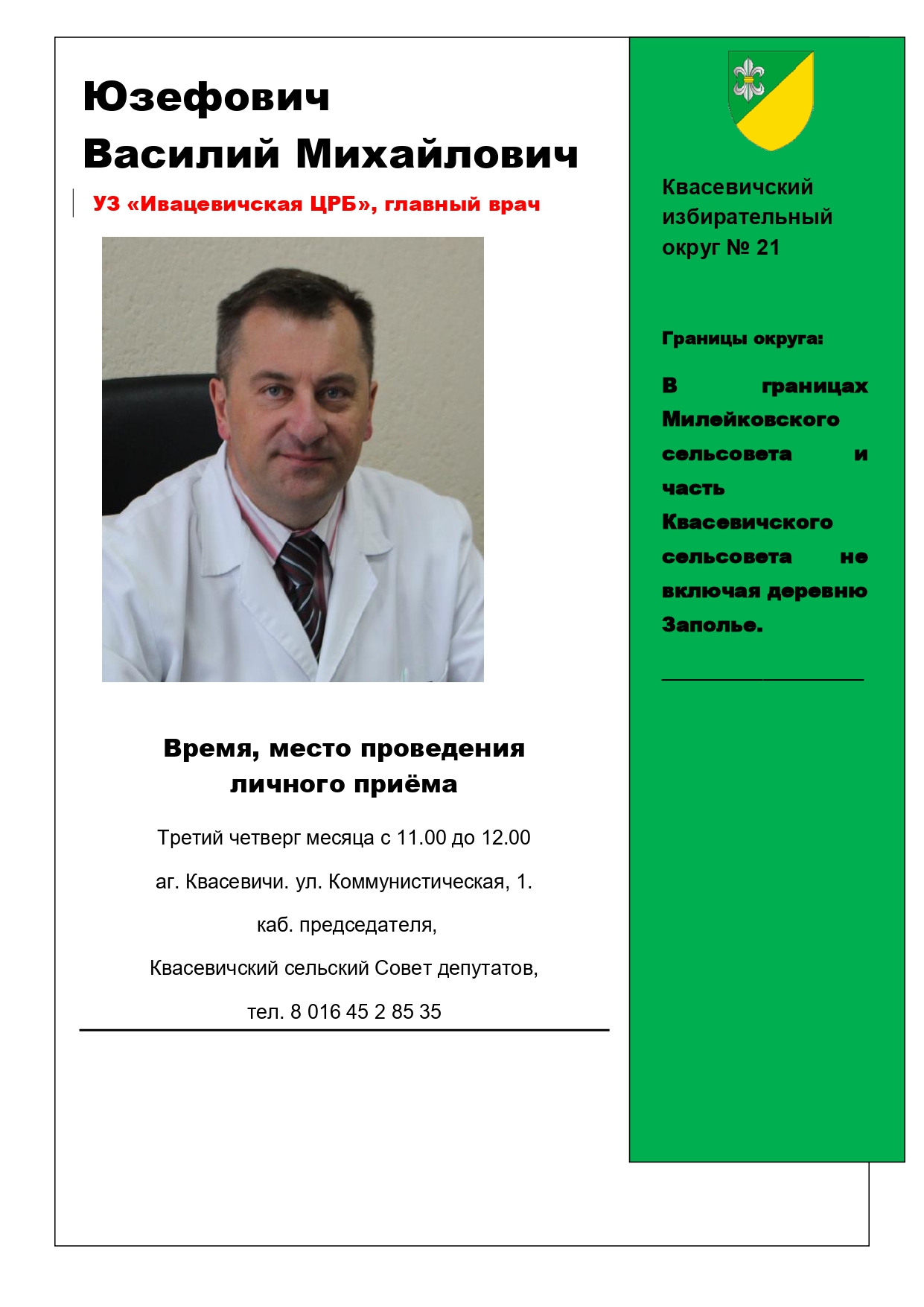 Личный прием депутатами районного Совета депутатов двадцать девятого созыва