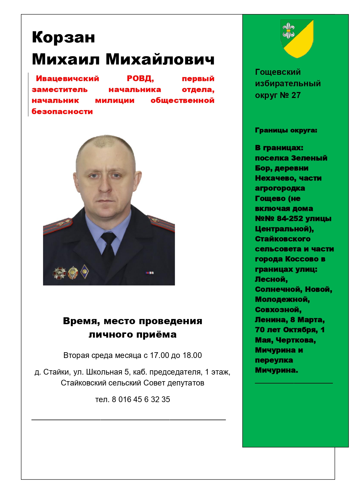 Личный прием депутатами районного Совета депутатов двадцать девятого созыва